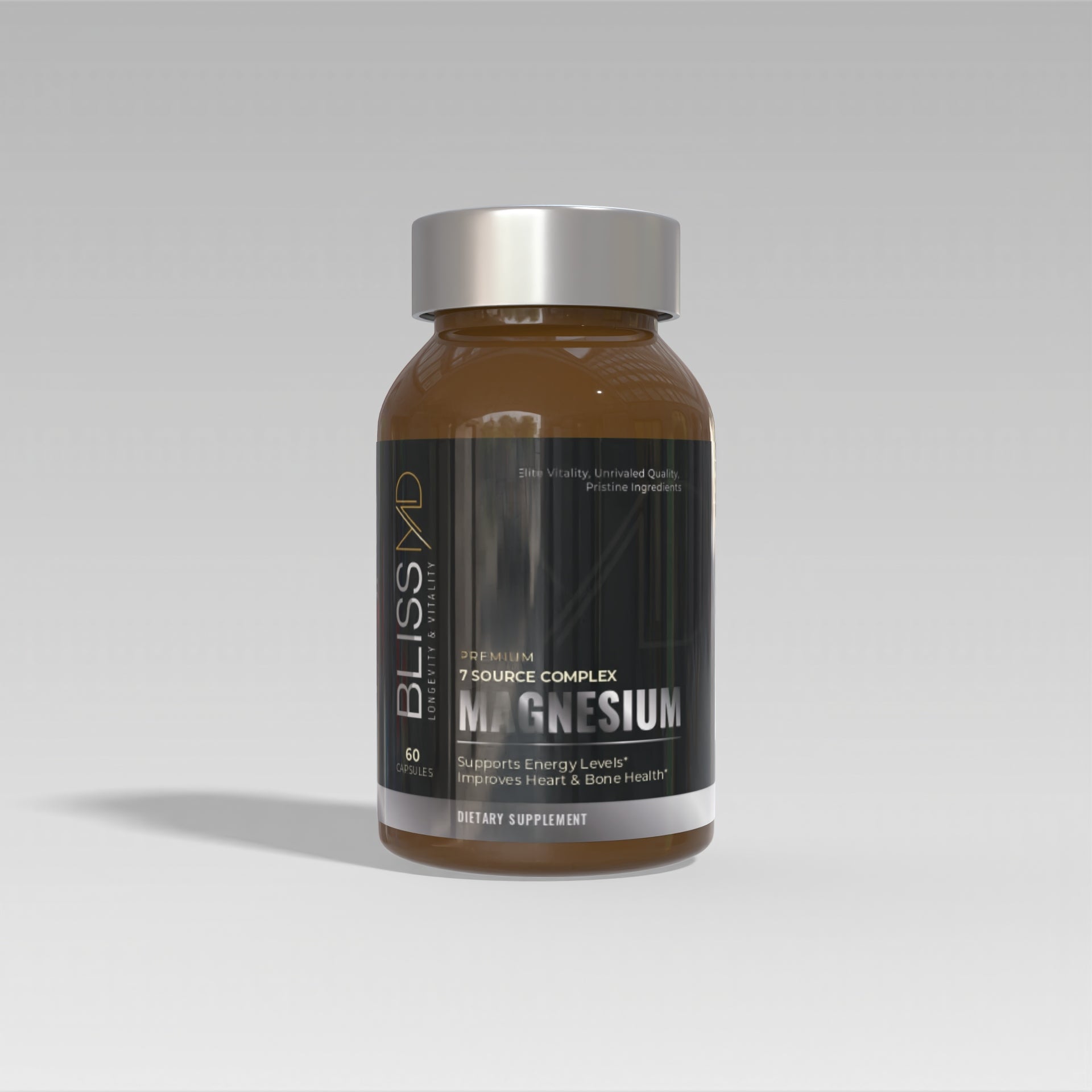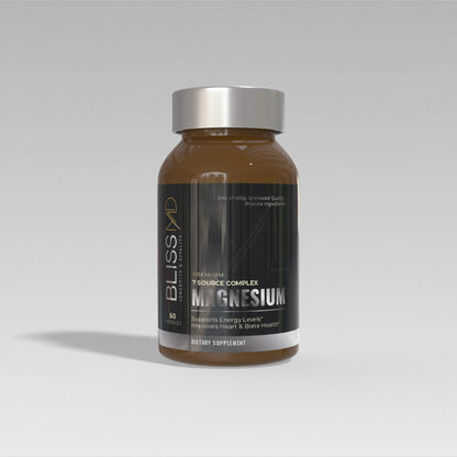 Bliss Magnesium is a premium magnesium complex, combining seven bioavailable forms for maximum absorption and effectiveness. It supports energy production, bone density, and cardiovascular health, while being vegan, gluten-free, and non-GMO. Packaged in sustainable glass bottles, this supplement embodies quality and environmental consciousness.